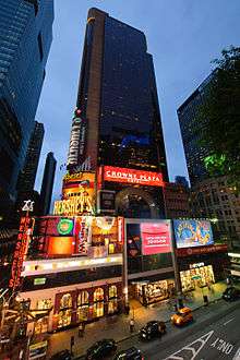 Crowne Plaza Times Square is a 795-room hotel situated in the Times Square area of New York City's midtown Manhattan, located at 1605 Broadway, between 48th and 49th Streets. West 48th Street, and West 49th Street. At 480 feet (146 meters), with 46 floors, it is the 94th tallest hotel in the world, the 29th tallest hotel in the United States, and the 15th-tallest hotel in New York City. The hotel was completed in 1989 and opened in 1990.