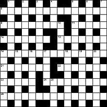 Some papers have additional grid rules. In The Times, for example, all words have at least half the letters checked, and although words can have two unches in succession, they cannot be the first two or last two letters of a word. The grid shown here breaks one Times grid rule: the 15-letter words at 9 and 24 across each have 8 letters unchecked out of 15. The Independent allows setters to use their own grid designs.