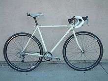 A cyclo-cross bicycle is a bicycle specifically designed for the rigors of a cyclo-cross race.[1] Cyclo-cross bicycles roughly resemble the racing bicycles used in road racing. The major differences between the two are the frame geometry, and the wider clearances that cyclo-cross bikes have for their larger tires and mud and other debris that they accumulate.
