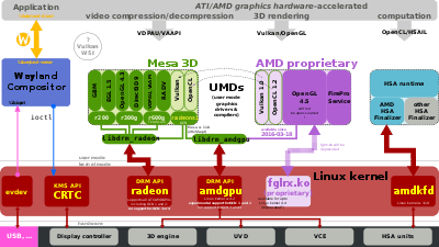 At XDC2014, Alex Deucher from AMD announced the unified kernel-mode driver.[70] The proprietary Linux graphic driver, libGL-fglrx-glx, will share the same DRM infrastructure with Mesa 3D. As there is no stable in-kernel ABI, AMD had to constantly adapt the former binary blob used by Catalyst.