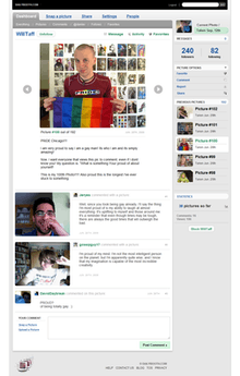 - 2.0 - This was a complete re-write. This version included live comment feeds, the ability to upload images for picture comments, and also made a use of @ replies, as well as an update to the iPhone App. This version was well received by most of the community, but with it came various bugs and problems. Not all of them have been fixed and troubles include problems saving photos and glitches that make it say users are following unrealistic numbers of people.