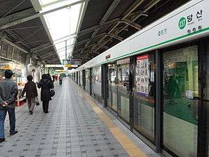 - ↑ "Dangsan (Line 2)". Seoul Metro. Retrieved 2016-07-04.