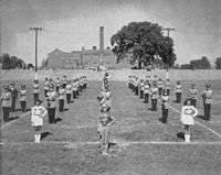 Public secondary education began in Columbia during the 1880s with the founding of Columbia High School in 1889 at the intersection of Eighth Street and Rogers.[14] As many high schools were at this point in history, CHS offered a two-year course of study. In 1895, it was increased to three, and again in 1896 to four. Extracurricular activities in 1898 included a literary society, choral union, orchestra, and debate team. Sports teams were present, but were not yet funded by the district. Overcrowding caused the demolition of the old school and the construction of a new three-story structure at the same site. The new building included the district's first gymnasium, and the first athletics and music teacher were hired.[14] 1912 saw the first edition of the school yearbook, the Cresset. The school mascot, the Kewpie, appeared for the first time in the Cresset associated with the basketball team "...whose loyalty to the school and to the Kewpie motto, ‘Keep Smiling,’ has won the State Championship." The school suffered through World War I as students were excused to work as part of the war effort, and the German Club was removed the extracurricular offerings.[14] In the 1920s, Columbia was suffering continued growth, and the district decided to build a new high school on the edge of town on the newly built U.S. Route 40. David Henry Hickman donated part of his estate which had formerly held grandstands and a track for horse racing. David H. Hickman High School opened in 1927, and the old high school became Jefferson Junior High School, which later became Jefferson Middle School. The Great Depression of the 1930s caused the school district to operate with a deficit for the first time; however, the high school building was expanded using loans and the Works Progress Administration. In this decade, the school's wrestlers captured three state championships, and Hickman created a marching band. The 1940s and World War II brought a new level of international awareness to Hickman, and classes in international relations, aeronautics, and home nursing were added. In 1944, the operetta "Tune In" was performed, and there have been yearly musical productions since. In 1948, the tradition of requiring sophomores to wear beanies was restored.[15] The 1950s saw the end of racial segregation in Columbia, and Hickman was integrated with Fredrick Douglas High School. The influx of students saw a building boom, and class rooms for special education, adult classes, vocational work, and laboratories were built. A new gymnasium was built in 1955 and a swimming pool added in 1968. In 1961, the tradition of sophomore beanies was ended. David Wheeler became Hickman's first presidential scholar in 1964, the first year of the program. Hickman saw four state championships in three sports in the 1960s.