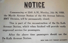 - 1 2 3 "DEKALB REBUILDING GETS TOP PRIORITY; Board of Transportation Says Enlargement of B.M.T. Stop Will Eliminate Bottleneck". The New York Times. 1952-06-06. Retrieved 2016-07-08.