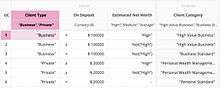 There are 6 business rules that determine the client's category and these are shown in the decision table here: