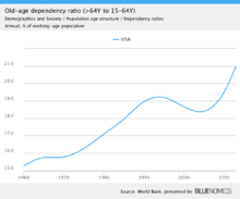 - ↑ USA - Old-age dependency ratio (>64Y to 15-64Y)