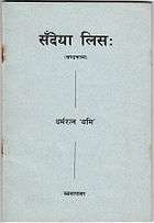 - Sandeyā Lisah (सँदेया लिस: "Tibet's reply") is an epic about an unfulfilled love affair between a Newar merchant in Lhasa and a Tibetan girl. Yami wrote it when he was in prison for the third time in 1950, and it was first published in 1952. A Nepali translation by Durga Lal Shrestha appeared in 2013 under the title Lhasa Bolchhe.[16]