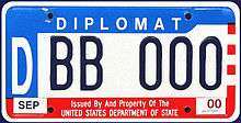 For a list of serial formats of diplomatic plates, see the article about United States license plate designs and serial formats.