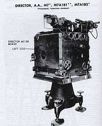 For anti-aircraft use, directors are usually used in conjunction with other fire control equipment, such as height finders or fire control radars.[2] In some armies these 'directors' were called 'predictors'. The Mark 51 director was used by the US Navy for 40 mm guns and later for 3"/50 caliber guns.[3]