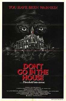 Don't Go in the House is a 1980 psychological slasher film written and directed by Joseph Ellison, and co-written by Ellen Hammill and Joe Masefield. With the plot focusing on a traumatized adult man capturing women and burning them to death with a flamethrower, the film was notable for gaining notoriety as a video nasty and remains banned in some countries.