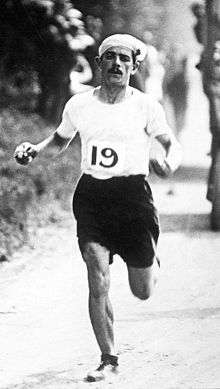 Dorando Pietri, often wrongly spelt Petri (Italian pronunciation: [doˈrando ˈpjɛtri]; 16 October 1885 – 7 February 1942) was an Italian long-distance runner. He finished first in the marathon at the 1908 Summer Olympics in London but was subsequently disqualified.[3]