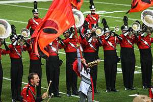 A modern drum and bugle corps, is a musical marching ensemble consisting of brass instruments, percussion instruments, synthesizers, and color guard. Typically operating as independent non-profit organizations, drum corps perform in competitions, parades, festivals, and other civic functions. Participants of all ages are represented within the band activity, but the majority are between the ages of 13 and 22 and are members of corps within Drum Corps International or Drum Corps Associates.[1]
