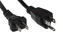 NEMA connectors are power plugs and receptacles used for AC mains electricity in North America and other countries that use the standards set by the US National Electrical Manufacturers Association. NEMA wiring devices are made in current ratings from 15 to 60 amperes (A), with voltage ratings from 125 to 600 volts (V). Different combinations of contact blade widths, shapes, orientation, and dimensions create non-interchangeable connectors that are unique for each combination of voltage, electric current carrying capacity, and grounding system.
