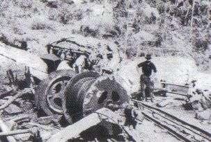 Mount Mulligan mine disaster in Australia 1921. These cable drums were blown 50 feet (15 m) from their foundations following a coal dust explosion.