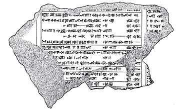 The Dynastic Chronicle, "Chronicle 18" in Grayson's Assyrian and Babylonian Chronicles[2] or the "Babylonian Royal Chronicle" in Glassner’s Mesopotamian Chronicles,[3] is a fragmentary ancient Mesopotamian text extant in at least four known copies. It is actually a bilingual text written in 6 columns, representing a continuation of the Sumerian king list tradition through to the 8th century BC and is an important source for the reconstruction of the historical narrative for certain periods poorly preserved elsewhere.