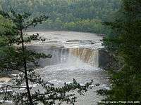 Eagle Falls is located in Cumberland Falls State Resort Park in McCreary County, Kentucky, United States.[1] Water from Eagle Creek descends 44 feet (13 m) before landing on the rocks below on the Cumberland River shoreline. Eagle Falls can be accessed by hiking Trail 9 located on Kentucky Route 90 in the Cumberland Falls State Park. The trail to Eagle Falls is 1.5 miles (2.4 km) and has very beautiful scenery along the way including the best views of Cumberland Falls.