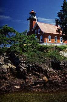 Eagle Harbor Light is an operational lighthouse at Eagle Harbor, in Keweenaw County in the state of Michigan. It sits on the rocky entrance to Eagle Harbor and is one of several light stations that guide mariners on Lake Superior across the northern edge of the Keweenaw Peninsula. The original lighthouse, built in 1851, was replaced in 1871 by the present red brick structure, which is a Michigan State Historic Site and listed on the National Register of Historic Places.[4]
