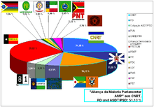 Seven parties won seats; the four leading parties are the FRETILIN, Gusmão's CNRT, a coalition of the Timorese Social Democratic Association and the Social Democratic Party, and the Democratic Party.