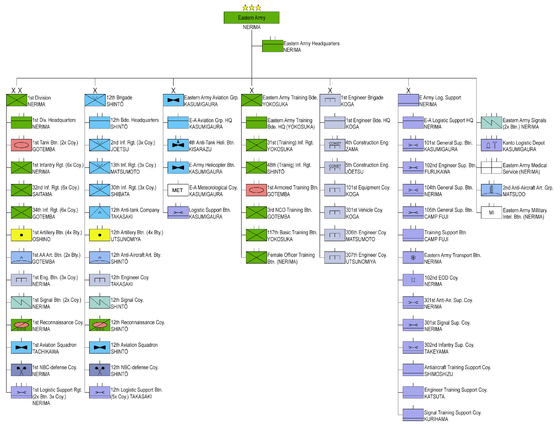 The Eastern Army (東部方面隊 Tōbu Hōmentai) is one of five active Armies of the Japan Ground Self-Defense Force headquartered at Camp Asaka in Nerima, Tokyo. Its responsibility is the defense of the Kantō and the Northern half of the Chūbu region.