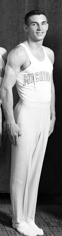 As a member of the Michigan Wolverines gymnastics teams, he won five Big Ten Conference championships—the 1957 all-around championship, the 1956 and 1957 vault championships, and the 1956 and 1957 parallel bars championships.[2] In 1956, he was also selected as an All-American in the parallel bars and all-around.[3]