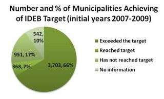 In the initial years of IDEB's implementation, 2007–2009, it was found that over 70% of municipalities either reached or exceeded targets set by the Ministry of Education and INEP for early primary education.[23]
