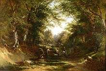 He signed some of his work as E Williams, which leads to confusion with his father, who painted in a similar style, and at times he signed as C Williams to purposely avoid such confusion. Because many of the paintings of both father and son are unsigned, it can be difficult to correctly attribute their work.[1] Edward Charles also collaborated on several paintings with William Shayer, where Williams would paint the landscape, and Shayer would add in figures and animals; his Near Wantage, Berkshire is a good example.[4] He died 25 July 1881 at Shepherds Bush in London.