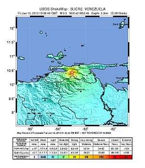 ShakeMap of the 2010 Venezuela earthquake that occurred along El Pilar Fault System.