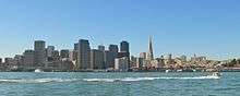 The Embarcadero is the eastern waterfront and roadway of the Port of San Francisco, San Francisco, California, along San Francisco Bay. It was constructed on reclaimed land along a three mile long[2] engineered seawall, from which piers extend into the bay. It derives its name from the Spanish verb embarcar, meaning "to embark"; embarcadero itself means "the place to embark". The Central Embarcadero Piers Historic District was added to the National Register of Historic Places on November 20, 2002.[1]