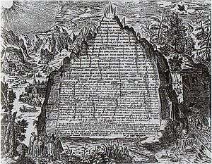 An imaginative 17th century depiction of the Emerald Tablet from the work of Heinrich Khunrath, 1606.