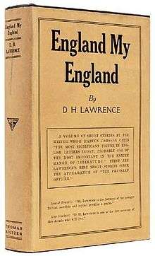 England, My England is the title of a collection of short stories by D. H. Lawrence. Individual items were originally written between 1913 and 1921, many of them against the background of World War I. Most of these versions were placed in magazines or periodicals. Ten were later selected and extensively revised by Lawrence for the England, My England volume. This was published on 24 October 1922 by Thomas Seltzer in the US. The first UK edition was published by Martin Secker in 1924.