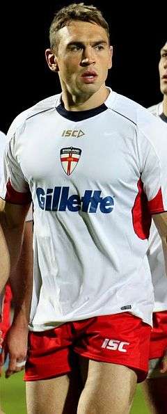 Traditionally a predominantly white kit is worn including white shorts and socks. However the jersey usually features some form of red, like red stripes, crosses or chevrons. These colours are similar to other English sporting teams and are the colours used on the national flag. In 2008 a new kit was introduced featuring a red cross on the front and red strips down the sides of the jersey, shorts and socks were white too with red strips.[3] Also in 2008, the Rugby Football League chose to abandon the traditional English lion on the badge in favour of a much simpler shield and cross design.[4]