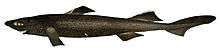 The velvet belly lanternshark (or simply velvet belly, Etmopterus spinax) is a species of dogfish shark in the family Etmopteridae. One of the most common deepwater sharks in the northeastern Atlantic Ocean, the velvet belly is found from Iceland and Norway to Gabon and South Africa at a depth of 20–2,490 m (66–8,169 ft).[1][2] A small shark generally no more than 45 cm (18 in) long, the velvet belly is so named because its black underside is abruptly distinct from the brown coloration on the rest of its body. The body of this species is fairly stout, with a moderately long snout and tail, and very small gill slits. Like other lanternsharks, the velvet belly is bioluminescent, with light-emitting photophores forming a species-specific pattern over its flanks and abdomen. The ventral photophores are thought to function in counter-illumination, which camouflages the shark against predators and prey.[3][4] The bioluminescent flank markings may play a role in intraspecific communication.[5]