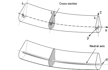 - ↑ For an Euler–Bernoulli beam not under any axial loading this axis is called the neutral axis.
