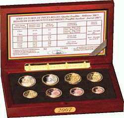 Euro proof sets are proof sets of the coins of the euro. Proof coins were originally coins minted to test the dies used in the coin minting process and to archive sets of coins minted every year. Modern proof sets are printed in higher numbers and are sold to the public and numismatists for collecting. Modern proof coins are often minted using special processes in order to make the coins more aesthetically pleasing. Mints in countries in the European Union who use the euro often make proof sets of the upcoming year's euro coins. Sets from these countries are listed below.