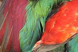 - ↑ McGraw, KH; Nogare, MC (2005). "Distribution of unique red feather pigments in parrots". Biology Letters. 1 (1): 38–43. doi:10.1098/rsbl.2004.0269. PMC 1629064