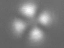An extinction cross photographed with a CCD camera using a green laser beam and a polarizer