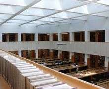 The Law Faculty offices are situated in the St Cross Building, which is a Grade II listed building, designed by the late Sir John Leslie Martin (architect of the Royal Festival Hall in London) and Colin St John Wilson (architect of the New British Library). The St Cross Building is also home to the Bodleian Law Library.[27]