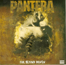 Far Beyond Driven is the third major label and seventh overall studio album by American heavy metal band Pantera, released on March 22, 1994 by EastWest Records. The album is Pantera's fastest-selling album.[1] The album peaked at number 1 on the Billboard 200[3][4] and was certified Platinum by the RIAA.[5] Also, the album was certified Platinum by the Canadian Recording Industry Association.[6] Far Beyond Driven is the first album by Pantera where the band's guitarist Darrell Abbott is credited as "Dimebag Darrell", having changed his nickname from "Diamond Darrell" the previous year. The Japanese and the Driven Downunder Tour '94 Souvenir Collection editions contain a bonus thirteenth track, "The Badge", a Poison Idea cover. This cover was also featured on The Crow soundtrack.[7]