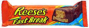 Reese's Fast Break (or, in Canada, Hershey Sidekick) is a chocolate bar produced by the Hershey Company. Like Reese's Peanut Butter Cups, another Hershey product, Reese's Fast Break has a milk chocolate coating over a peanut butter filling. However, the Fast Break also has a layer of nougat beneath the peanut butter.