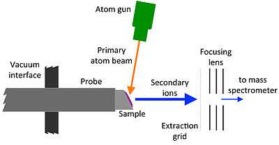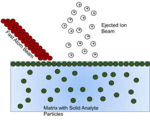 Fast atom bombardment (FAB) is an ionization technique used in mass spectrometry in which a beam of high energy atoms strikes a surface to create ions.[1][2][3] It was developed by Michael Barber at the University of Manchester.[4] When a beam of high energy ions is used instead of atoms (as in secondary ion mass spectrometry), the method is known as liquid secondary ion mass spectrometry (LSIMS).[5][6][7] In FAB and LSIMS, the material to be analyzed is mixed with a non-volatile chemical protection environment, called a matrix, and is bombarded under vacuum with a high energy (4000 to 10,000 electron volts) beam of atoms. The atoms are typically from an inert gas such as argon or xenon. Common matrices include glycerol, thioglycerol, 3-nitrobenzyl alcohol (3-NBA), 18-crown-6 ether, 2-nitrophenyloctyl ether, sulfolane, diethanolamine, and triethanolamine. This technique is similar to secondary ion mass spectrometry and plasma desorption mass spectrometry.