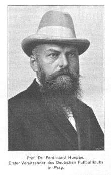 Ferdinand Adolph Theophil Hueppe (Born August 24, 1852 in Neuwied-Heddesdorf, died September 15, 1938 in Dresden, Germany) was, from 1900 to 1904, the first Deutscher Fußball-Bund (DFB, German Football Association) president.