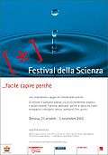 The third edition of the Science Festival, from 27 October to 8 November 2005, is dedicated to the key theme of Frontiers, in the sense of the meeting points between the known and the unknown, of the limits which must continuously be moved back, of boundaries and thresholds of different forms of knowledge, to be constantly overcome by new forms of interdisciplinary research.