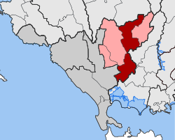 Filippiada (Greek: Φιλιππιάδα) is a small town and a former municipality in the Preveza regional unit, Epirus, Greece. Since the 2011 local government reform it is part of the municipality Ziros, of which it is a municipal unit.[2] The municipal unit has an area of 142.409 km2.[3] Population 8,106 (2011 census). The town Filippiada is situated at the foot of low hills on the right bank of the river Louros. The northern part of the municipal unit is mountainous. Filippiada is 10 km (6 mi) northwest of Arta, 30 km (19 mi) northeast of Preveza and 52 km (32 mi) south of Ioannina. The Greek National Road 5 (Antirrio - Agrinio - Arta - Ioannina) passes through the town, and the Greek National Road 21 connects it with Preveza.