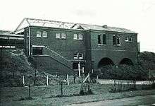 The new station had four platform faces - two outer platforms, and two inner platforms sharing an island between the southbound line from Patchway and the westbound line to London. The western platforms served trains between Bristol and Wales, while the eastern platforms served trains on the new line. The platforms were linked by a subway which led to the booking office, situated on ground level by the main entrance on the east side of the station.[22] The approach road led south from the main entrance, towards the A4174.[2][22][26] There were waiting rooms and large canopies on each of the platforms. There were goods facilities to the south of the road, on the west side of the line and covering the site of the first station.[22] There was a goods shed with a loading platform on a passing loop, as well as a north-facing covered loading platform and a south-facing siding. An additional south-facing siding for coal traffic was added after the First World War. Opposite the goods yard was Filton Junction Signal Box, which controlled the junction and by 1948 had more than 70 levers.[26]