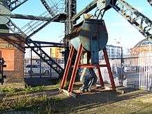 Connected to a spur of the Stobcross Railway, the crane's primary purpose was the lifting of heavy machinery, such as tanks and steam locomotives, onto ships for export.[16] As many as 30,000 locomotives were hauled through the streets of Glasgow by Clydesdale horses, traction engines and diesel tractors, from the works at Springburn to the crane for export to the British Empire.[17] The crane is (as of 1988) not in working order, but is retained as a symbol of the city's engineering heritage.[8][18]