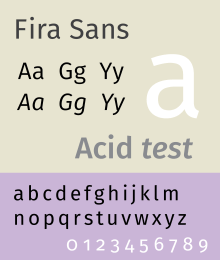 Fira Sans (initially called Feura Sans) is a humanist sans-serif typeface designed by Erik Spiekermann, Ralph du Carrois, Anja Meiners and Botio Nikoltchev of Carrois Type Design for the Firefox OS.[1][2][3][4] Fira was released in 2013 initially under the Apache License and later reissued under the SIL Open Font License. It is closely related to the Meta typeface designed and developed by Spiekermann in the late 1980s which is used as the brand typeface of the Mozilla Foundation.[5]