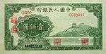 The first series of Renminbi banknotes was introduced during the Chinese Civil War by the newly founded People's Bank of China on December 1, 1948, nearly one year before the founding of the People's Republic of China itself. It was issued to unify and replace the various currencies of the communist-held territories as well as the currency of the Nationalist government.[1]