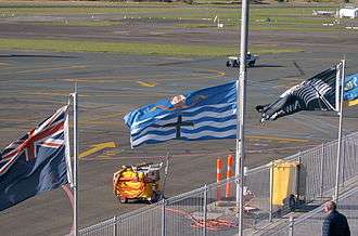 The flag of the City of Nelson represents Nelson City, New Zealand.[1] The flag is flown from many public buildings and other landmarks in Nelson including Christ Church Cathedral. It is also intended for public use and is often seen flying from private residences in the city.[2]