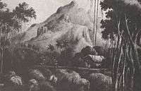 Following the mutiny, Christian attempted to build a colony on Tubuai, but there the mutineers met with conflict with natives. Abandoning the island, he stopped briefly in Tahiti where he married Maimiti, the daughter of one of the local chiefs, on 16 June 1789.[7] While on Tahiti, he dropped off sixteen crewmen. These sixteen included four Bligh loyalists who had been left behind on Bounty and two who had neither participated in, nor resisted, the mutiny. The remaining nine mutineers, six Tahitian men and eleven Tahitian women then sailed eastward. In time, they landed on Pitcairn Island, where they stripped Bounty of all that could be floated ashore before Matthew Quintal set it on fire, stranding them. The resulting sexual imbalance, combined with the effective enslavement of the Tahitian men by the mutineers, led to insurrection and the deaths of most of the men.