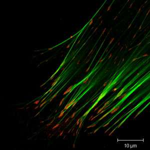 - ↑ Beningo, Karen A.; Dembo, Micah; Kaverina, Irina; Small, J. Victor; Wang, Yu-li (2001-05-14). "Nascent Focal Adhesions Are Responsible for the Generation of Strong Propulsive Forces in Migrating Fibroblasts". The Journal of Cell Biology. 153 (4): 881–888. doi:10.1083/jcb.153.4.881. ISSN 0021-9525. PMC 2192381